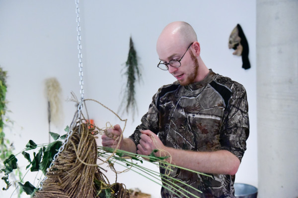 Jamie Ross led two workshops – one for children and one for adults – on the tying of knot spells, in the context of the making of an effigy using natural fibres foraged from the University of Toronto Scarborough campus. The first was developed for preschool aged children from N’shaeeman Childcare Centre, and included storytelling and a show-and-tell based on foraged objects. In the later workshop for adults, participants learned how to make rope from natural fibres and took part in constructing a Cornholio grain effigy, one of the figures that Radical Faeries and other pagans make and burn annually at the harvest holiday of Lammas.